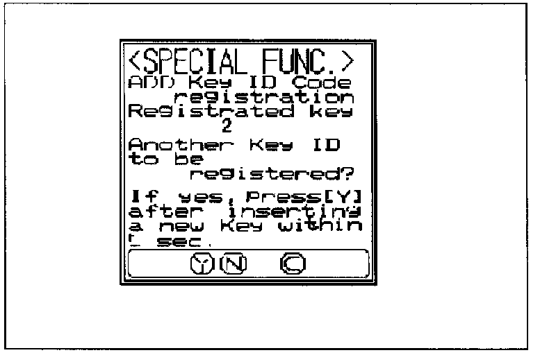 6. The number of keys currently registered will be displayed. To register an additional key, replace the ignition key with the next key to be registered within five seconds and then press the "YES" key. Key ID registration screen will be displayed, then register another key.