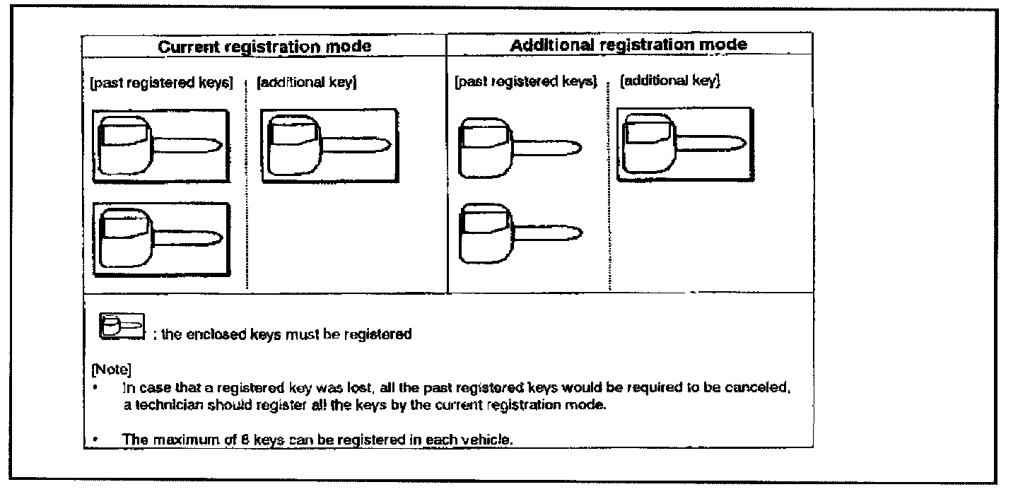 ^ Any newly registered key can start the engine only after that key turns the ignition switch OFF and the engine control relay is OFF. Turning the ignition switch ON again, will then allow the engine to start with the new key.