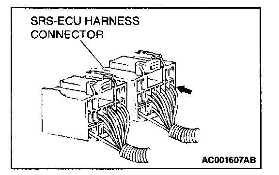 Since the SRS-ECU harness connector is plated to improve conductivity, observe the warning below when checking this connector.