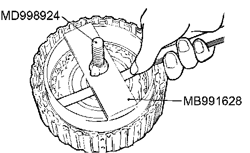 1. Set special tools MD999590 and MD998924 as shown in the illustration.