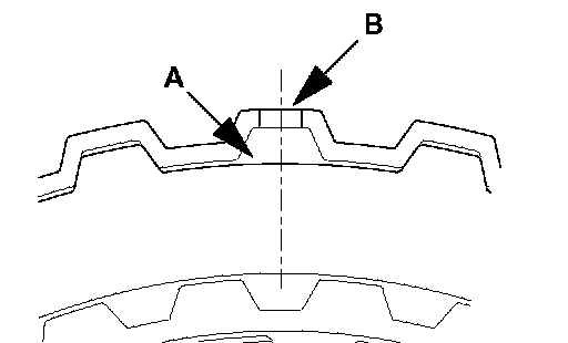 2. Install the clutch reaction plate in the direction shown. Install it the same as the clutch plate, so that the places with no teeth (marked "A") are aligned with the holes in the retainer (marked "B").