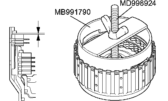 2. Set special tools MB991790 and MD998924 as shown in the illustration, and compress the clutch element.