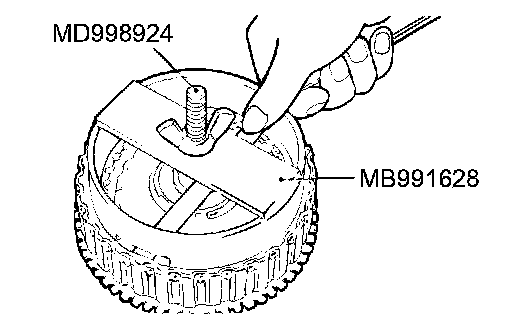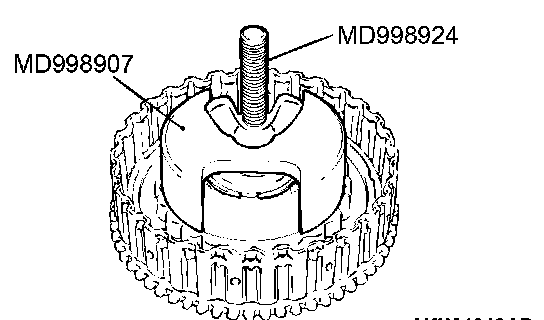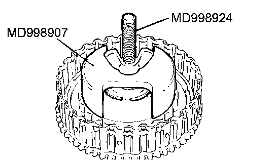 1. Set special tools MD998907 and MD998924 as shown in the illustration.