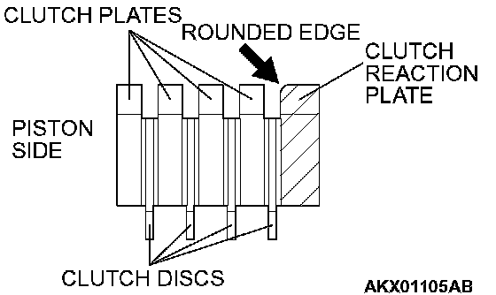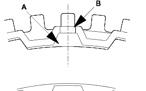 2. Install the clutch reaction plate in the direction shown. install it the same as the clutch plates, so that the areas with no teeth (marked "A") are aligned with the holes in the retainer (marked "B").