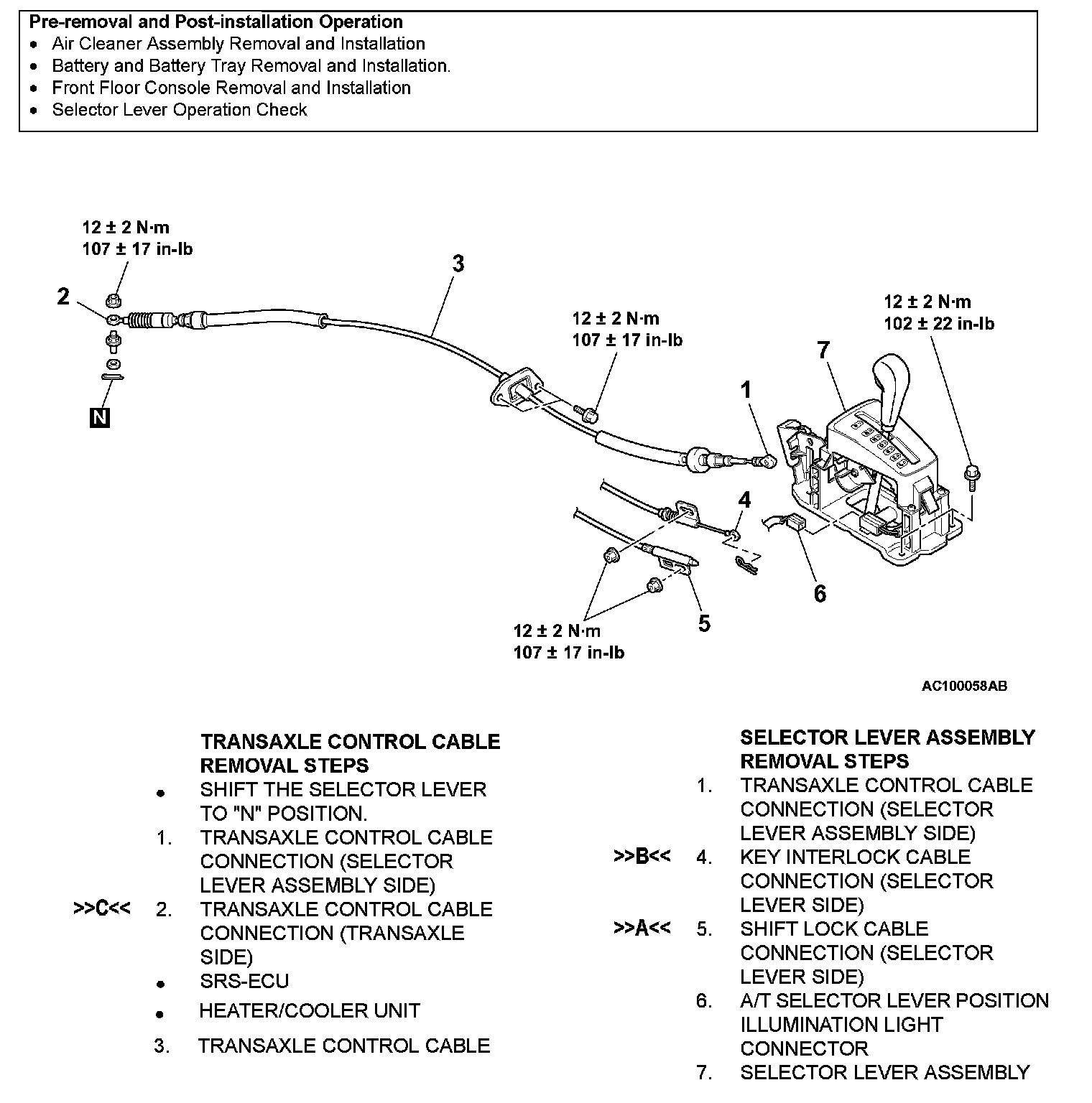 >>A<< SHIFT LOCK CABLE (SELECTOR LEVER SIDE) INSTALLATION