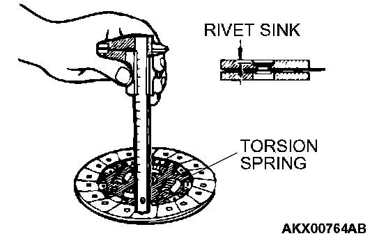 2. Measure the rivet sink. Replace the clutch disc if it is below the limit.