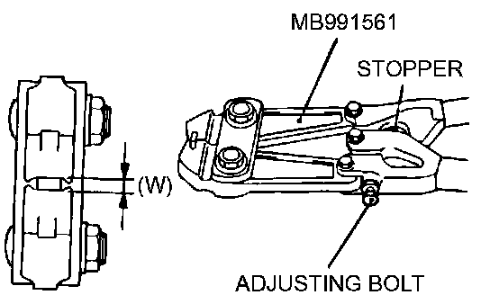 5. Turn the adjusting bolt on special tool MB991561 so that the size of the opening (W) is at the standard value.