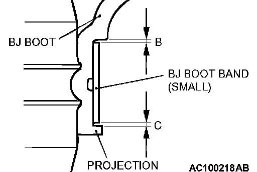 6. Position the BJ boot band (small) so that there are even clearance at either end (B and C).