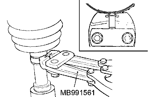 ^ Crimp the boot band until the special tool MB991561 touches the stopper.