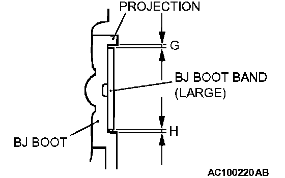13. Position the BJ boot band (large) so that there are even clearance at either end (G and H).