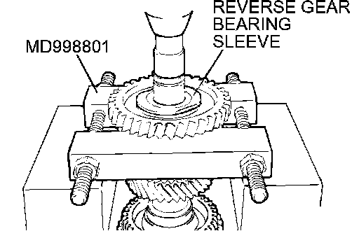 1. Using special tool MD998801, support the reverse gear, and then set them on the press.