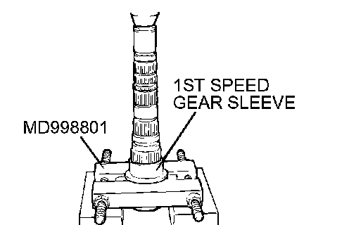 1. Using special tool MD998801, support the 1st speed gear sleeve, and then set them on the press.
