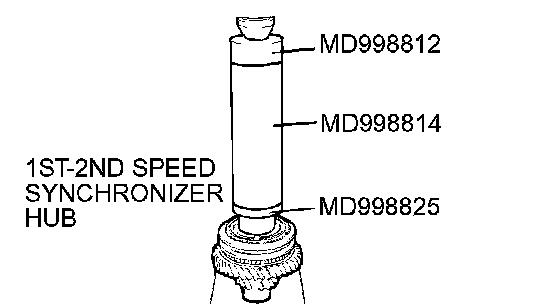3. Using special tools MD998812, MD998814, MD998825, install the 1st-2nd speed synchronizer hub with the press.