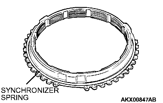 Install the synchronizer spring onto the outer synchronizer ring as shown.