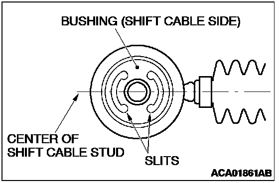 ^ Make sure that slits of the shift cable-side bushing point are as shown.
