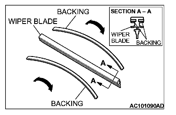 When installing the wiper blade, check that the backing inside the wiper blade is warped toward the wiper arm.