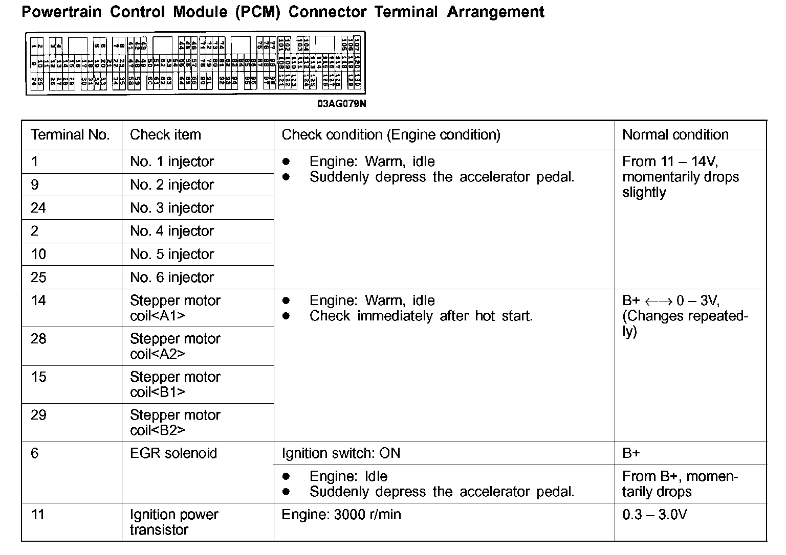 PCM Connector Terminal Arrangement
