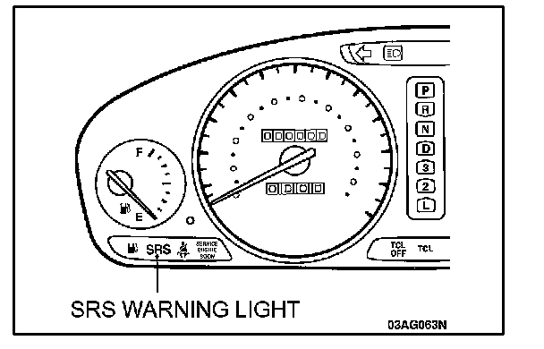2. Does the SRS warning light illuminate for about 7 seconds, and then remain off for at least 5 seconds after turning off?
