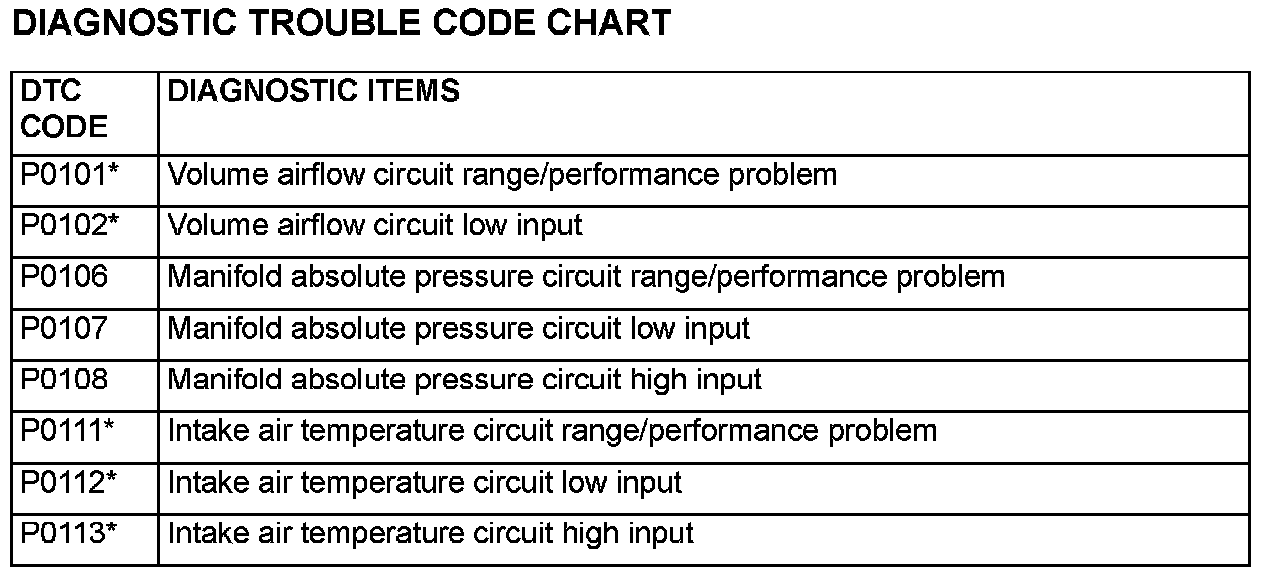 DIAGNOSTIC TROUBLE CODE CHARTP0101 - P0113: