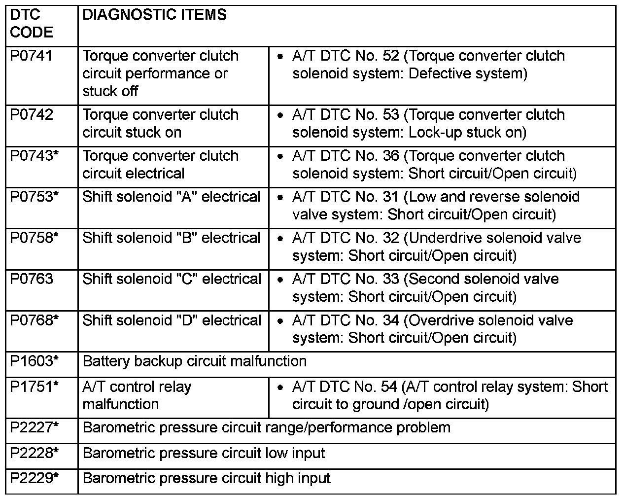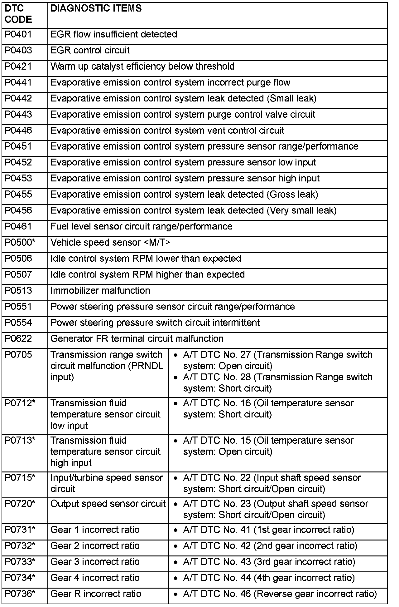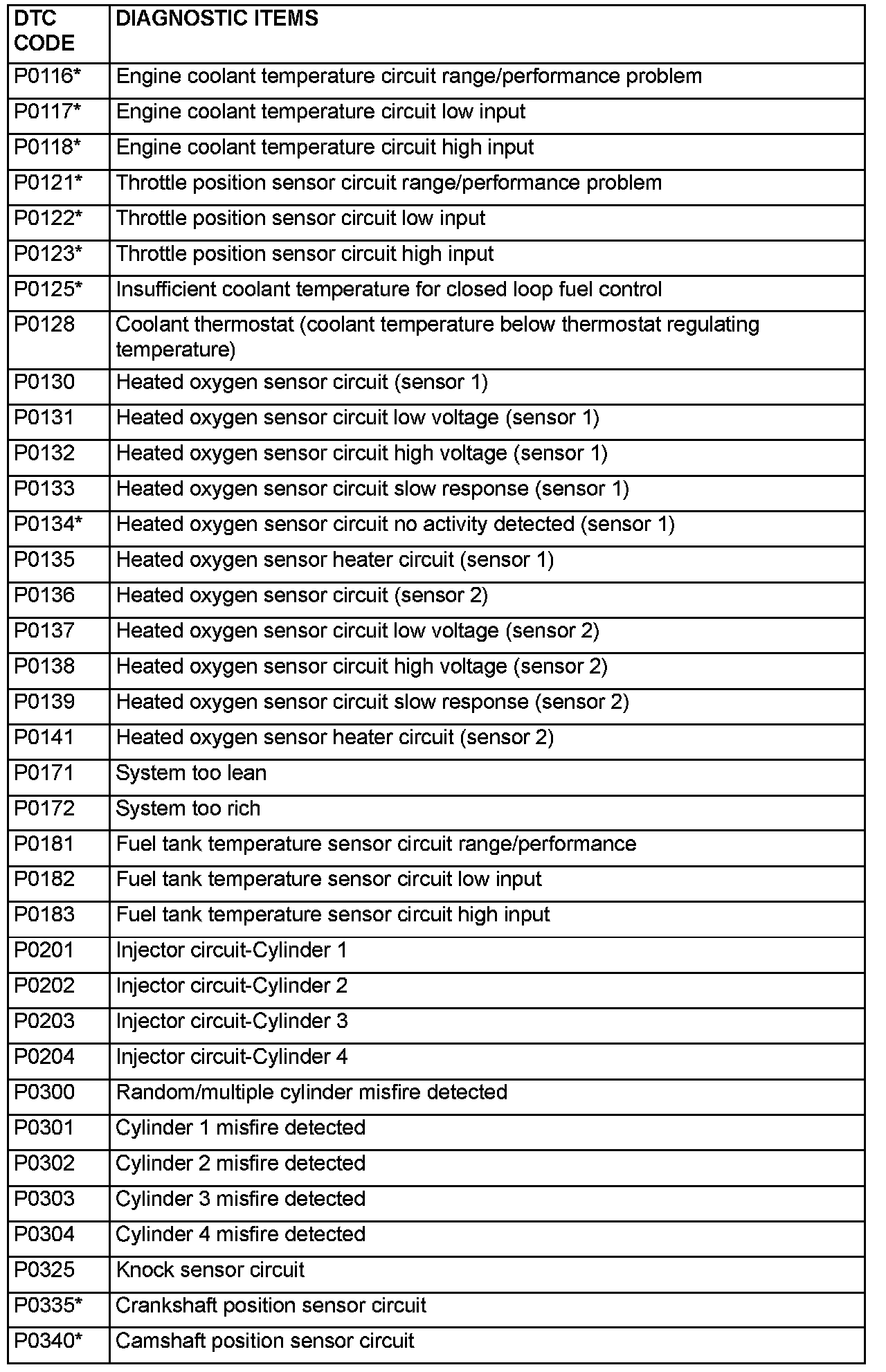 After the ECM [M/T] or PCM [A/T] detects a malfunction, a diagnostic trouble code is recorded the next time the engine is started and the same malfunction is re-detected. However, for items marked with a "*", the diagnostic trouble code is recorded on the first detection of the malfunction.