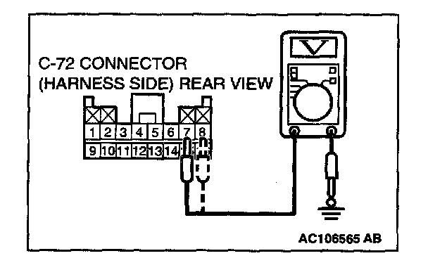CAUTION: Do not insert a test probe into the terminal from its front side directly as the connector contact pressure may be weakened.