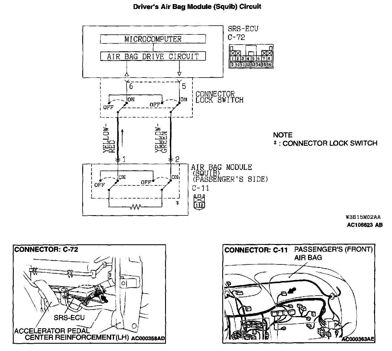 NO: Repair the harness wires between SRS-ECU connector C-72 and passenger's air bag module connector C-11. Then go to Step 4.