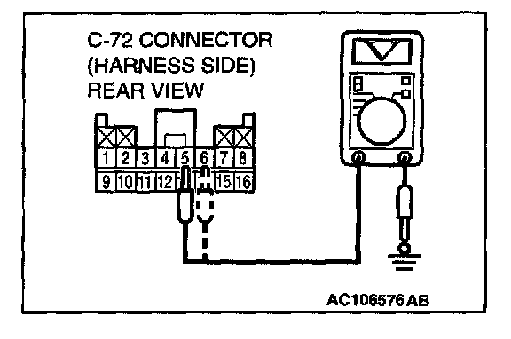 CAUTION: Do not insert a test probe into the terminal from its front side directly as the connector contact pressure may be weakened.