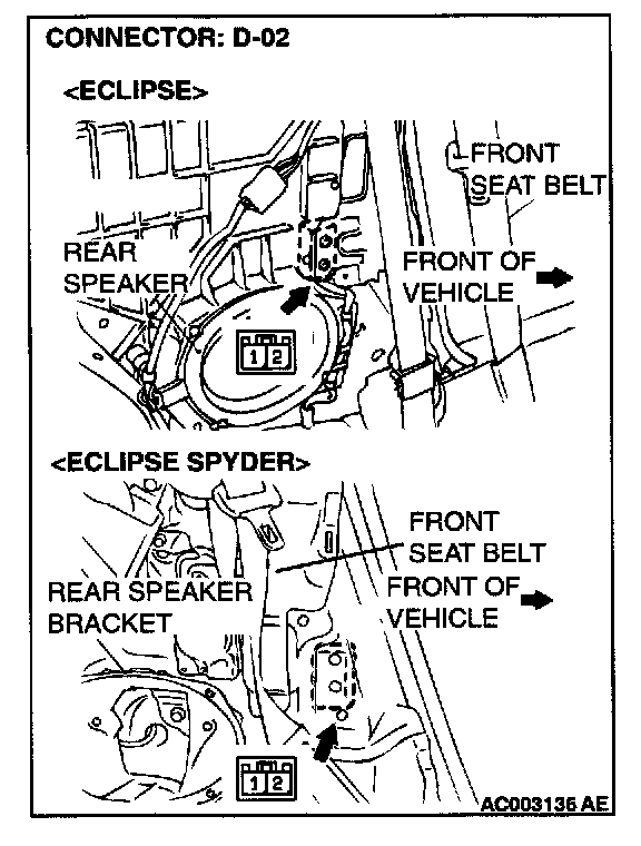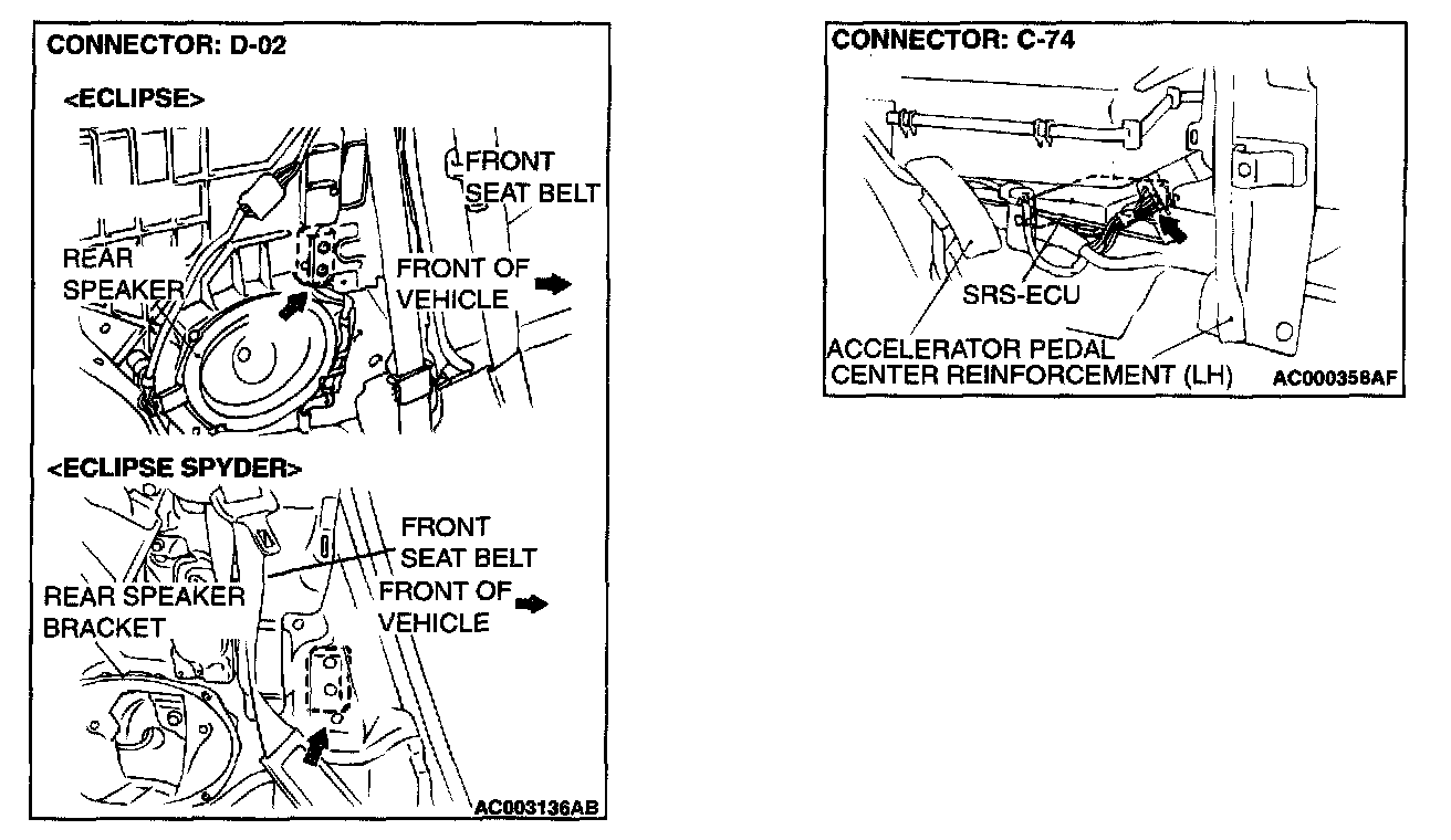 STEP 2. Check the harness wires between SRS-ECU connector C-74 (terminal No.40 and 42) and side impact sensor (RH) connector D-02 (terminal No.1 and 2).