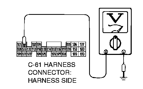 STEP 23. Measure the transmission range switch output voltage at PCM connector C-61 by backprobing. ("2" position)