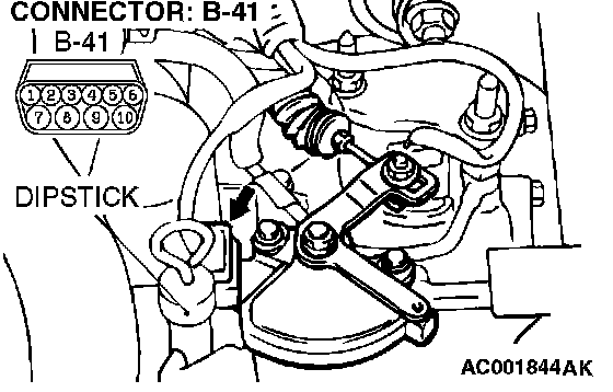 STEP 9. Check harness for open circuit or short circuit to ground between transmission range switch connector B-41 terminal 7 and PCM connector C-61 <2.4L Engine> or C-63 <3.0L Engine> terminal 108.