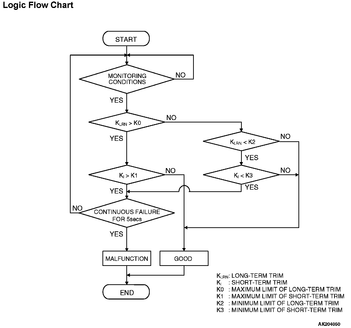 - If a malfunction occurs in the fuel system, the fuel trim value becomes too small.