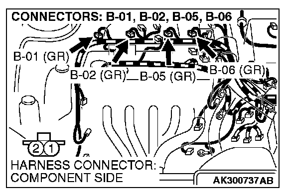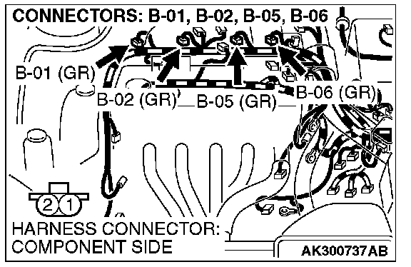 1. Connect scan tool MB991958 to the data link connector.