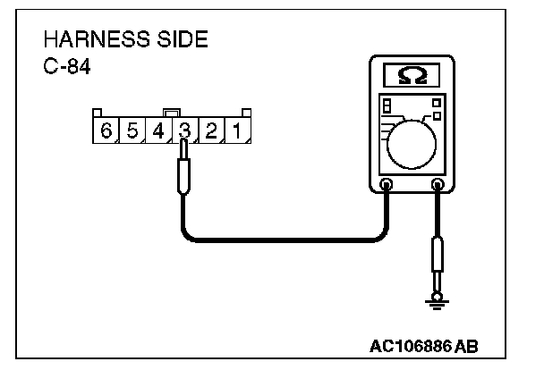 STEP 6. Check the wiring harness between clock spring connector C-84 (terminal 3) and radio and CD player connector C-21 (terminal 24).