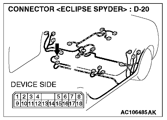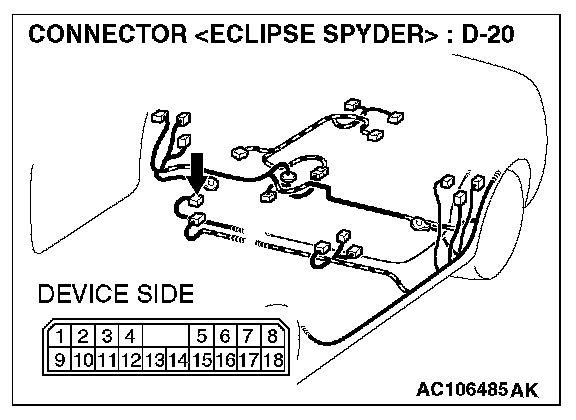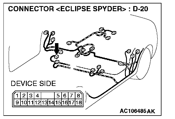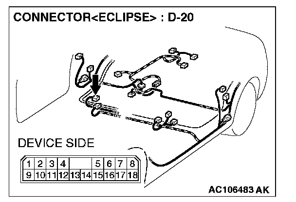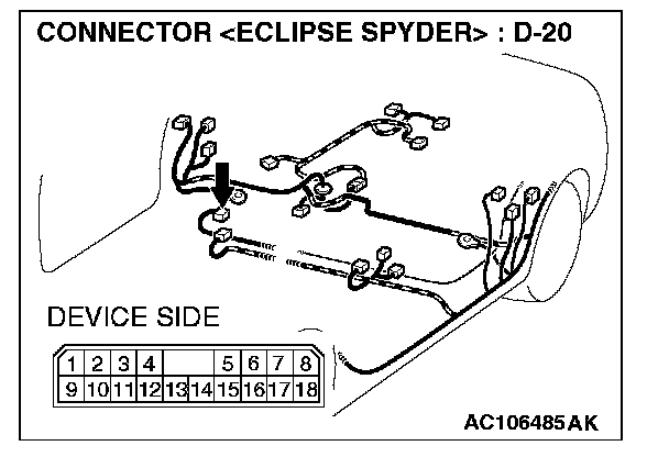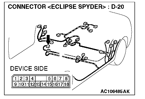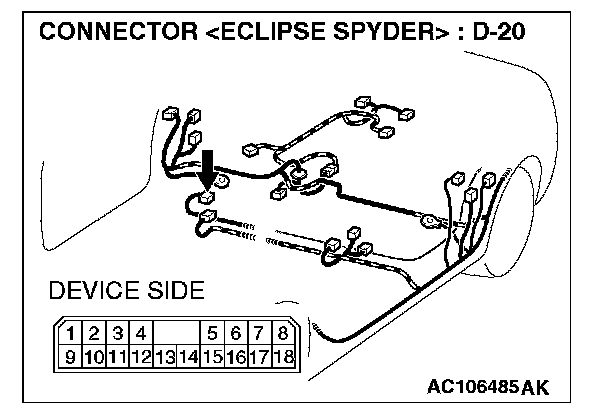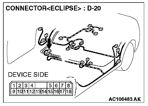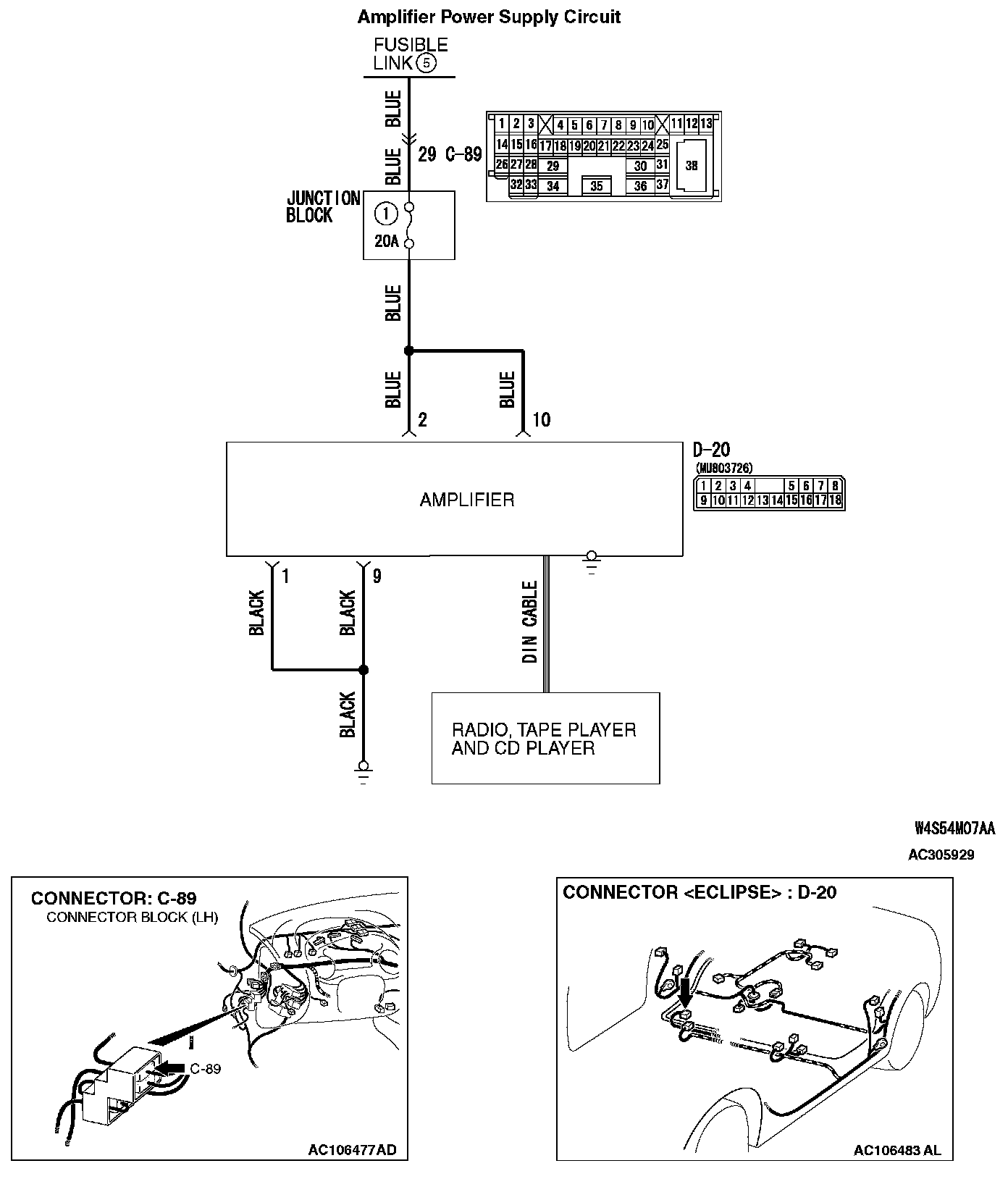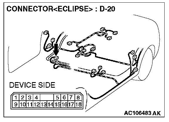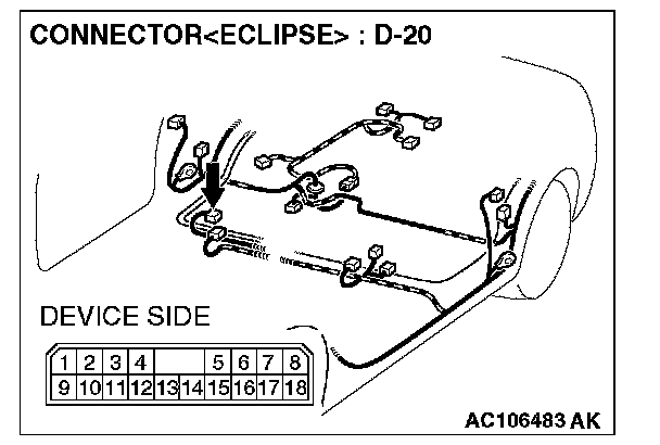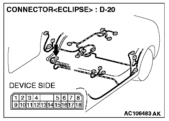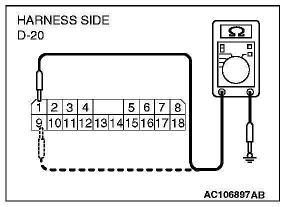 STEP 6. Check the wiring harness between amplifier connector D-20 (terminal 1 and 9) and ground.