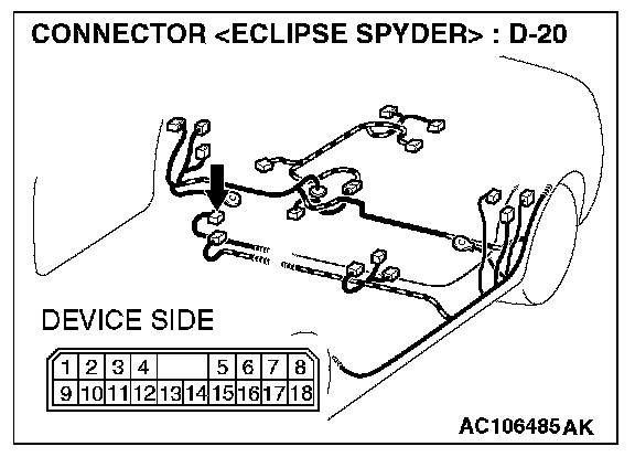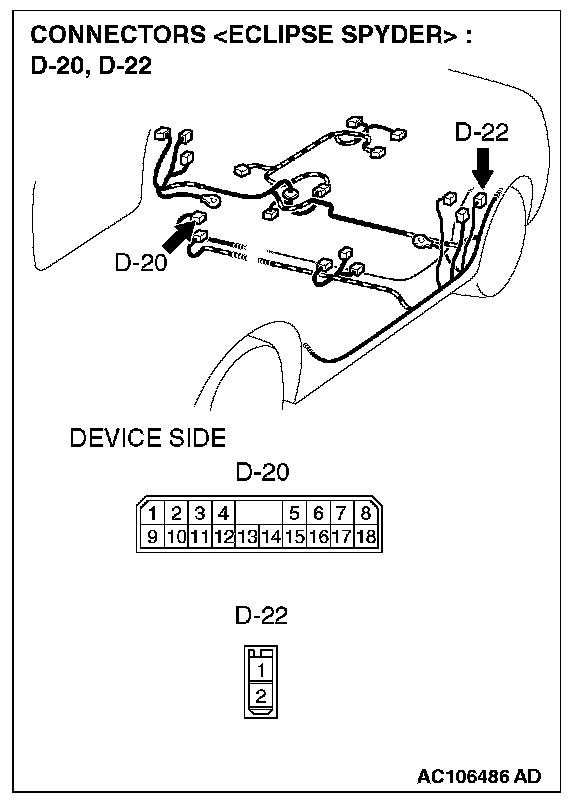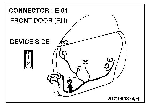 STEP 26. Check the wiring harness between front door speaker (RH) connector E-01 (terminal 1 and 2) and amplifier connector D-20 (terminal 15 and 16).