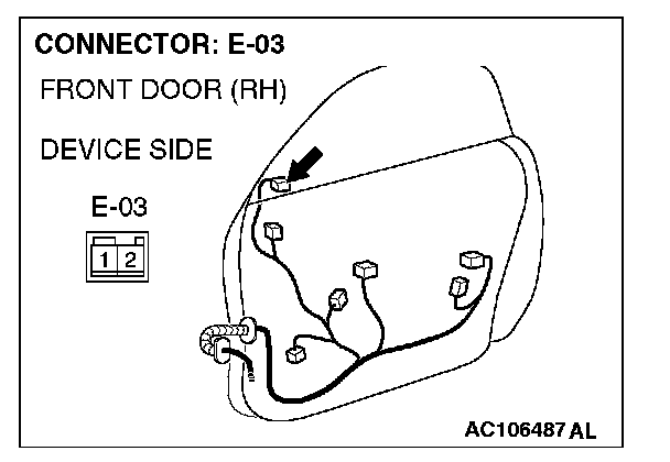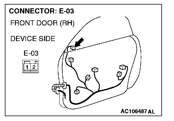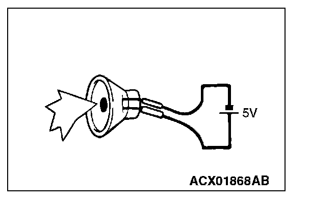 2. Check that the rear speaker (RH) generates noise when a five-volt voltage is applied on the rear speaker (RH) terminal.