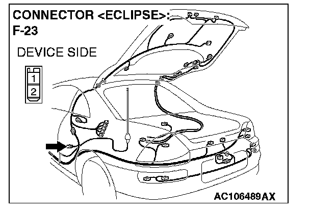 STEP 30. Check the wiring harness between rear speaker (LH) connector F-23 (terminal 1 and 2)