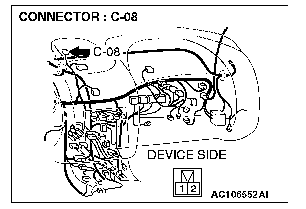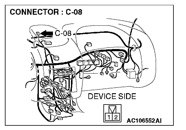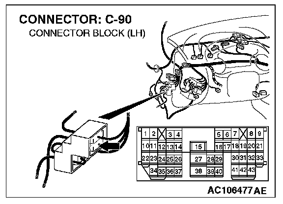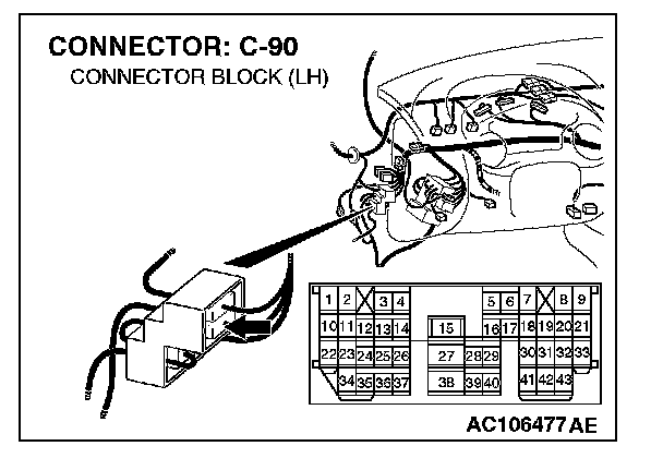 NOTE: After inspecting intermediate connectors C-90, inspect the wire. If intermediate connectors C-90 is damaged, repair or replace the wiring harness. Refer to Harness Connector Inspection.