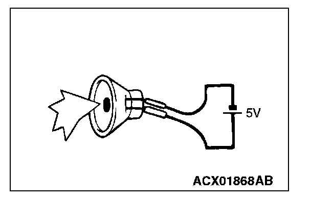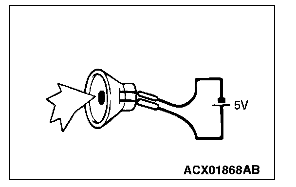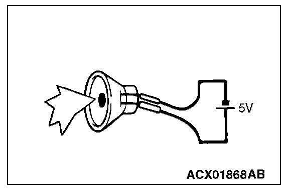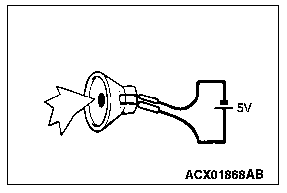 2. Check that the tweeter (RH) generates noise when a five-volt voltage is applied on the tweeter (RH) terminal.