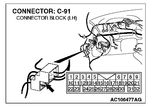 NOTE: After inspecting intermediate connectors C-91, inspect the wire. If intermediate connectors C-91 is damaged, repair or replace the wiring harness. Refer to Harness Connector Inspection.