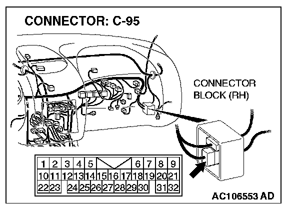 NOTE: After inspecting intermediate connectors C-95, inspect the wire. If intermediate connectors C-95 is damaged, repair or replace the wiring harness. Refer to Harness Connector Inspection.