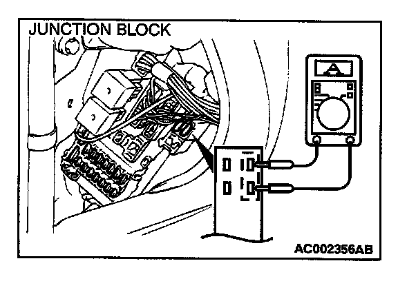 1. Remove the sunroof fuse and connect an ammeter as shown in the illustration.