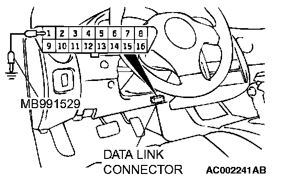 1. Use special tool MB991529 to ground number 1 terminal of the data link connector.