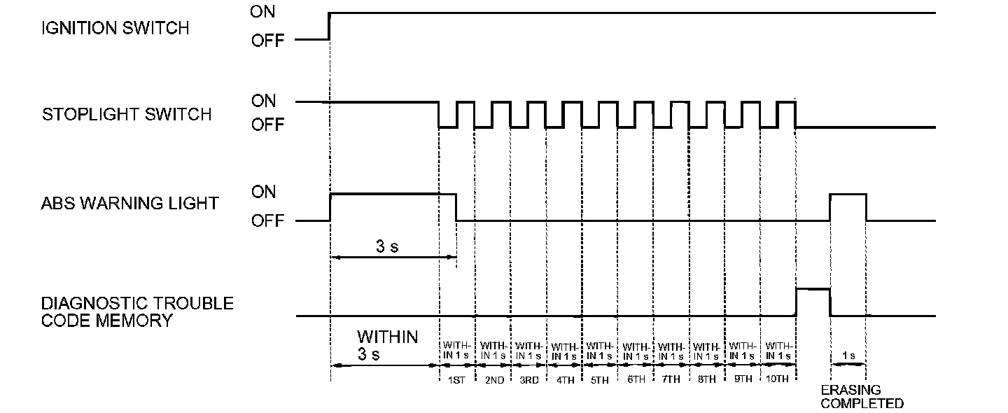 4. After turning the ignition switch to the "ON" position, release the brake pedal within three seconds. Repeat this process of pressing and releasing the brake pedal 10 continuous times.
