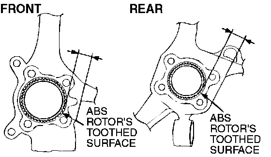 The clearance between the wheel speed sensor and the ABS rotor's toothed surface is not adjustable, but measure the distance between the sensor installation surface and the ABS rotor's toothed surface.