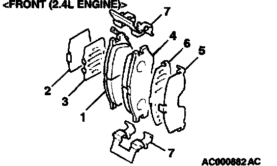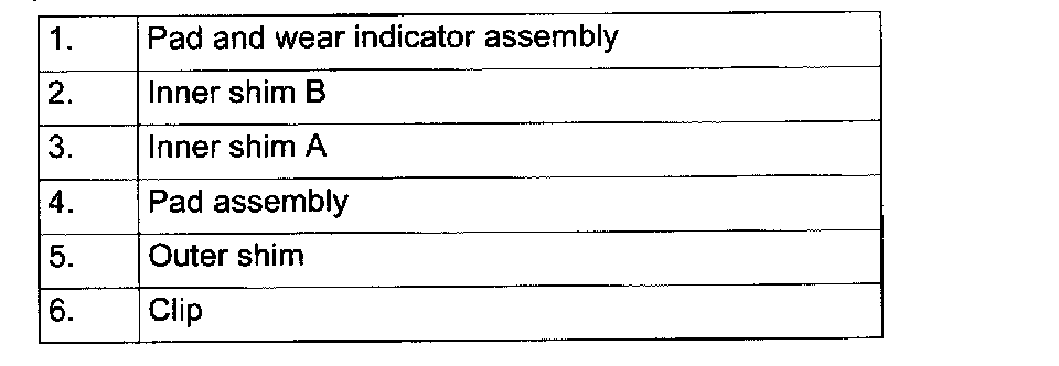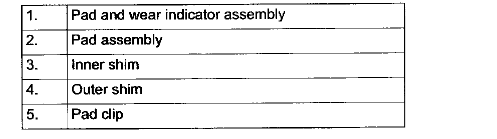 ^ Whenever a pad must be replaced, replace both LH and RH wheel pads as a set to prevent the vehicle from pulling to one side when braking.