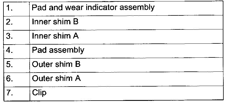 ^ Pad and wear indicator assembly and inner shim A contact surface
