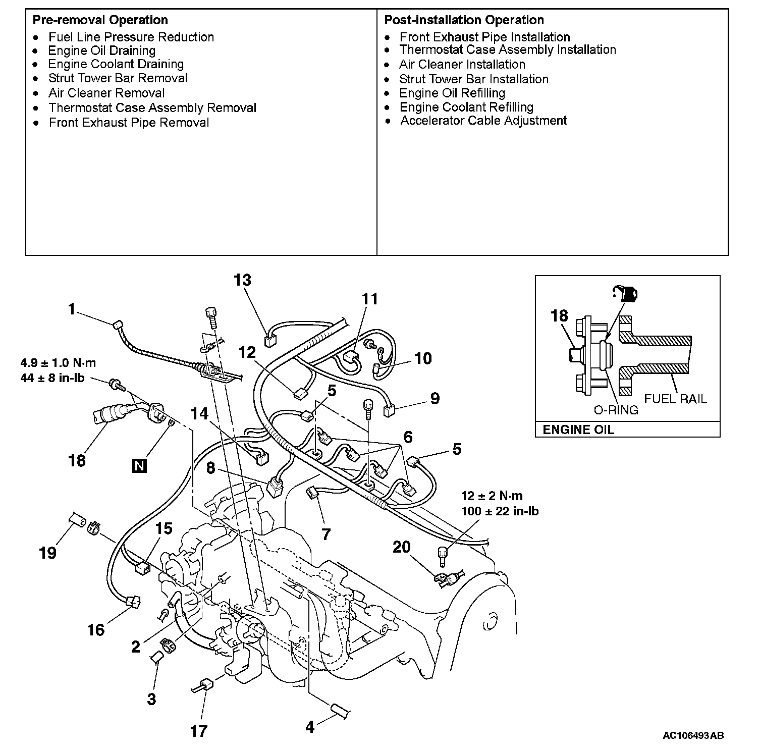 CAUTION: Do not allow engine oil to enter the fuel rail.