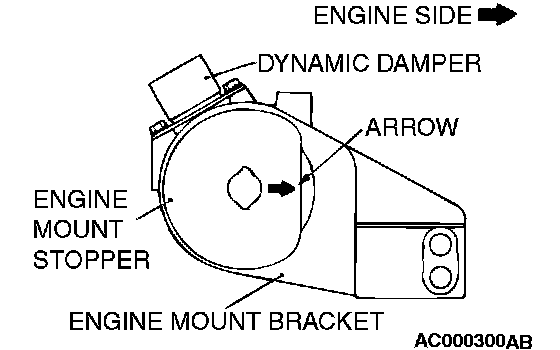 Clamp the engine mount stopper so that the arrow points in the direction as shown in the diagram.