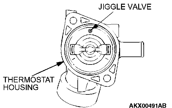 2. Install the thermostat as shown in the illustration. The jiggle valve must be at the uppermost position.